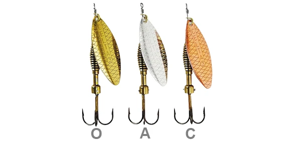 Un nuevo modelo en la familia CELTA. Su chapa con forma de olivo gira muy cerca del eje. Ideal para aguas profundas o corrientes rápidas. Fabricado con el sistema quita-vueltas.